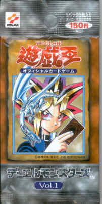 On February 4th, 1999, Konami released Vol. 1, the very first booster pack in the Japanese version of their game. It featured 38 cards that appeared before in various Yu-Gi-Oh products, as well as two brand new cards at the time, Fissure and Trap Hole. The layout on the card is somewhere between Bandai's version of the cards and the one they'd eventually use when the game is released internationally.