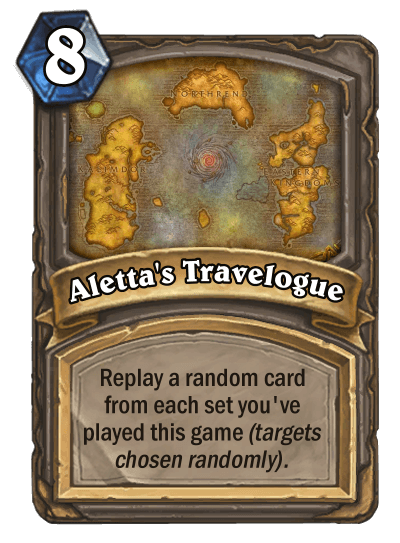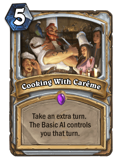This time, we've got custom Hearthstone veteran Frostivus to showcase a set made all the way back in 2018. The set in question is one by the name of Around the World in 80 Meals. The reason I'm choosing to showcase this older set is because it ties into a brand new custom set released earlier this month also released by Frostivus, and both sets have ties to each other. The second set, Aletta's Kitchen, will be the subject of next week's installment. The link in this paragraph allows you to access every card from both sets, but can be filtered to only show one set.