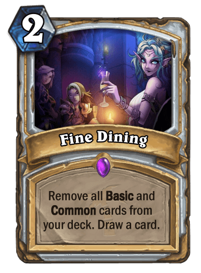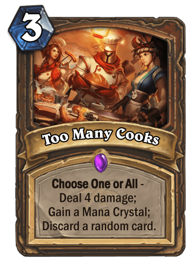 As the name of the set would suggest, the set is themed around foods and cooking. A central element of the culinary process is to bring multiple ingredients together and you've got an assortment of tools to achieve this. This set also contains some new tools, notably in the form of the Mix keyword. Mixing a card shuffles it back into its owner's deck and then that player will draw a card to replace it. It can be considered to be vaguely reminiscent of the Tradeable mechanic from United in Stormwind released 3 years after this set, although there are many aspects to differentiate the two mechanics.