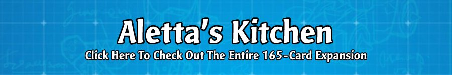 Aletta's Kitchen is a continuation of Around the World in 80 Meals accessed on the same page as that expansion, and cards from both sets can be filtered out. The Mix keyword from the previous set returns, but introduced in Aletta's Kitchen is the brand new Recipe mechanic. Recipe cards are cards that give you multiple options and returns to your hand with the options you didn't pick remaining.