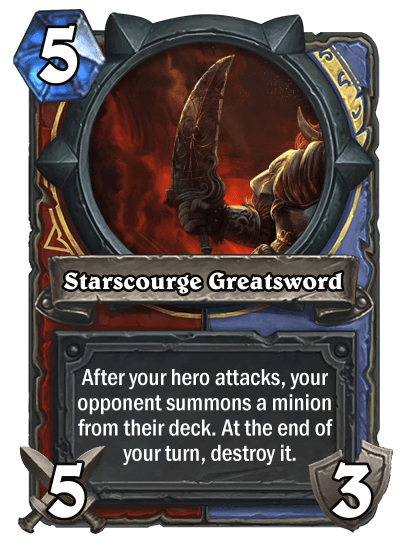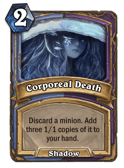 MrRhapsody: "I want to say that this is my first attempt at making duels content, and I must say it was quite fun and refreshing! Not having to worry about balance is a hell of a relief, like, I know how powerful stuff like Corporeal Death can be with cards like Alexstrasza the Life-Binder, but I don't care, everything in Duels is broken, and if something get way out of control, they just ban the card, giving much more space to design, I welcome everyone to try to make custom content for Duels, specially if you want to make IP crossovers, we need more custom content in the community, I hope inspired you reader to make some! And lastly I want to say that I was making a custom expansion, but I had to put a pause in it, it just stopped being fun for me to make it, however I already have 95 cards made for it, I'll probably come back to it eventually, we'll see. And that's all for now, thank you for the spotlight and the readers, see y'all soon."