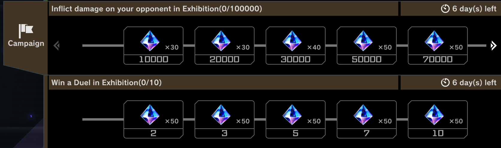 - 50000, 70000, 100000 damage: 50 Gems each
