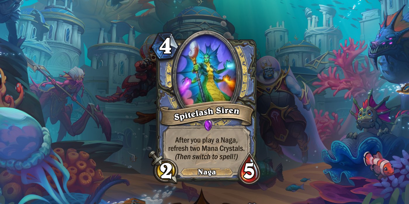 A new Hearthstone Mage card has been revealed by TheCantelope - Spitelash Siren! You'll want to go check out his reveal on Twitter for a song - acapella version of the Sunken City trailer. There are 4 remaining card reveal spots on the reveal schedule.