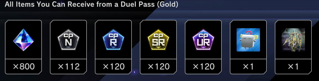 The old Duel Pass expired yesterday, so it's time for a new one. As before, it will come in two versions, a Normal one, which is available for free for all players, and a Gold one, which will cost 800 Gems to unlock.