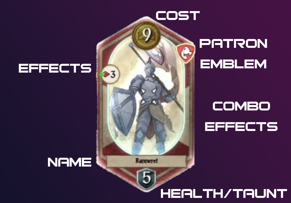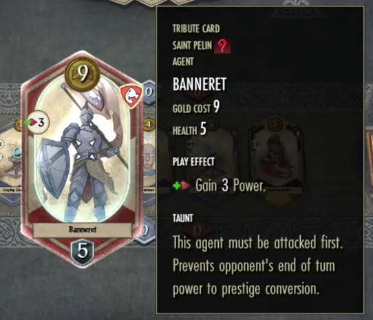 - Health: 5 (This also indicates that the card must be attacked (Taunt), otherwise, opponent cannot convert power to prestige.