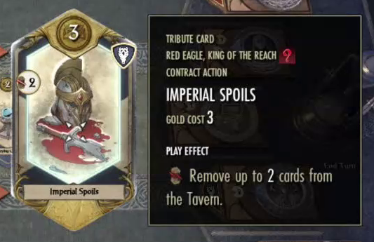 - You can buy cards from the Tavern that you have the correct currency for to purchase.