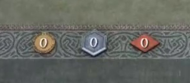 Your resources in the middle of the game board - Gold, Prestige, and Power.