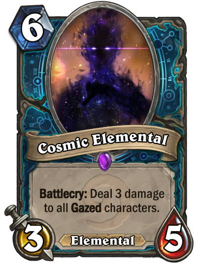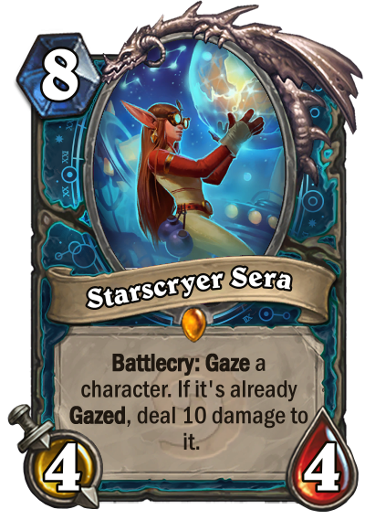 In term of gameplay, Astromancer is designed from the ground up to be in the flavor of "control RNG". Its Hero Power and a majority of its class cards are random effects that would be then be improved by its keyword Gaze.