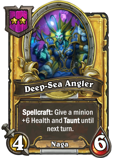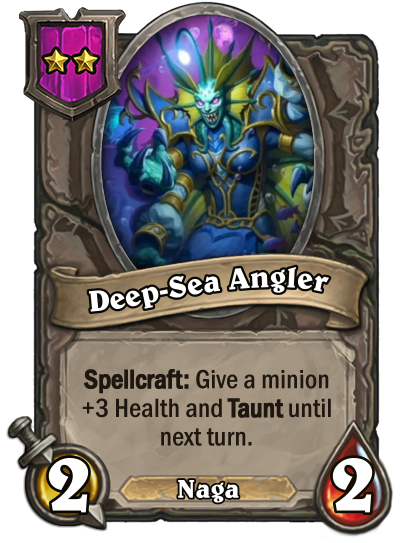 Deep-Sea Angler is a Tier 2 minion. Minions with the Spellcraft keyword grant a temporary spell each turn.