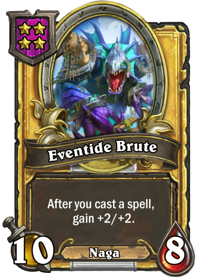 Also, really excited for Eventide Brute. I want to play a dream comp of Captain Flat Tusk, Cap'n Hoggarr, and Eventide Brutes. Just buy pirates, play Blood Gems, and watch the stats soar!