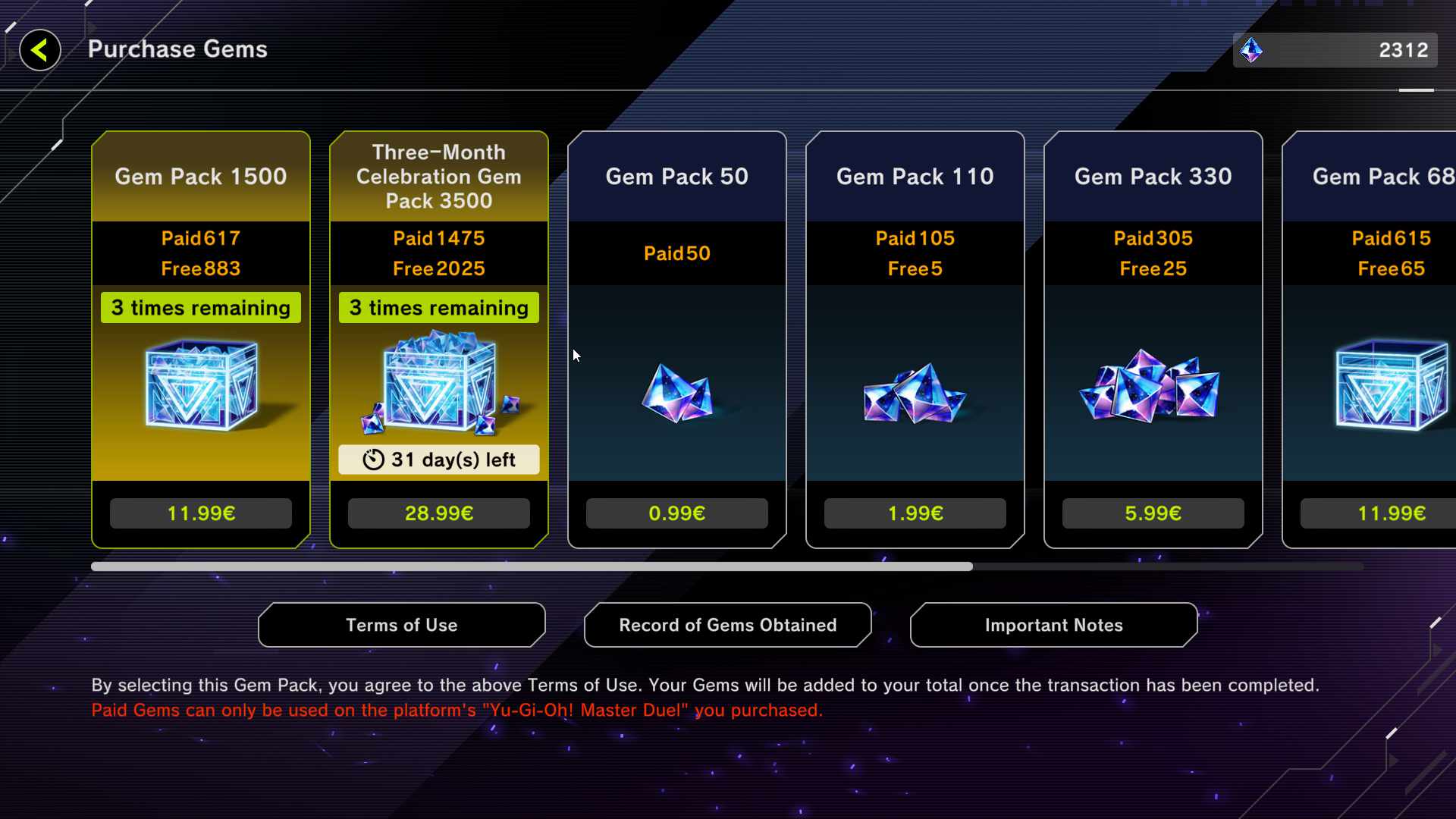 Along with the free Gems, there's also a bundle in the shop to purchase gems with real money. This one is 3500 Gems for 29 EUR or your regional equivalent. This bundle can be purchased up to 3 times by each player, and goes away at the same time as the free Gems. (Funny enough, the notification talks about the game's launch, instead of the 3 month anniversary)