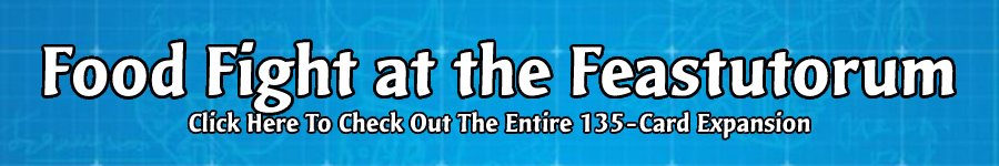 Welcome all to a new Fan Community Spotlight. Yesterday, we celebrated Out of Cards' third anniversary and announced some pretty huge news, and we're also currently in the middle of revealing the Throne of the Tides mini-set for Voyage of the Sunken City. Let me give you something to fit both occasions, that being a brand new fan-made set to showcase. This time, we've got Food Fight at the Feastutorum by Mr.Stupid, a set exploring all around the culinary world. The set takes place in the Boomsday Labs, where the labs themselves seem to have gone out of commission, and Whizbang has transformed the building from a science facility into an array of food shops.