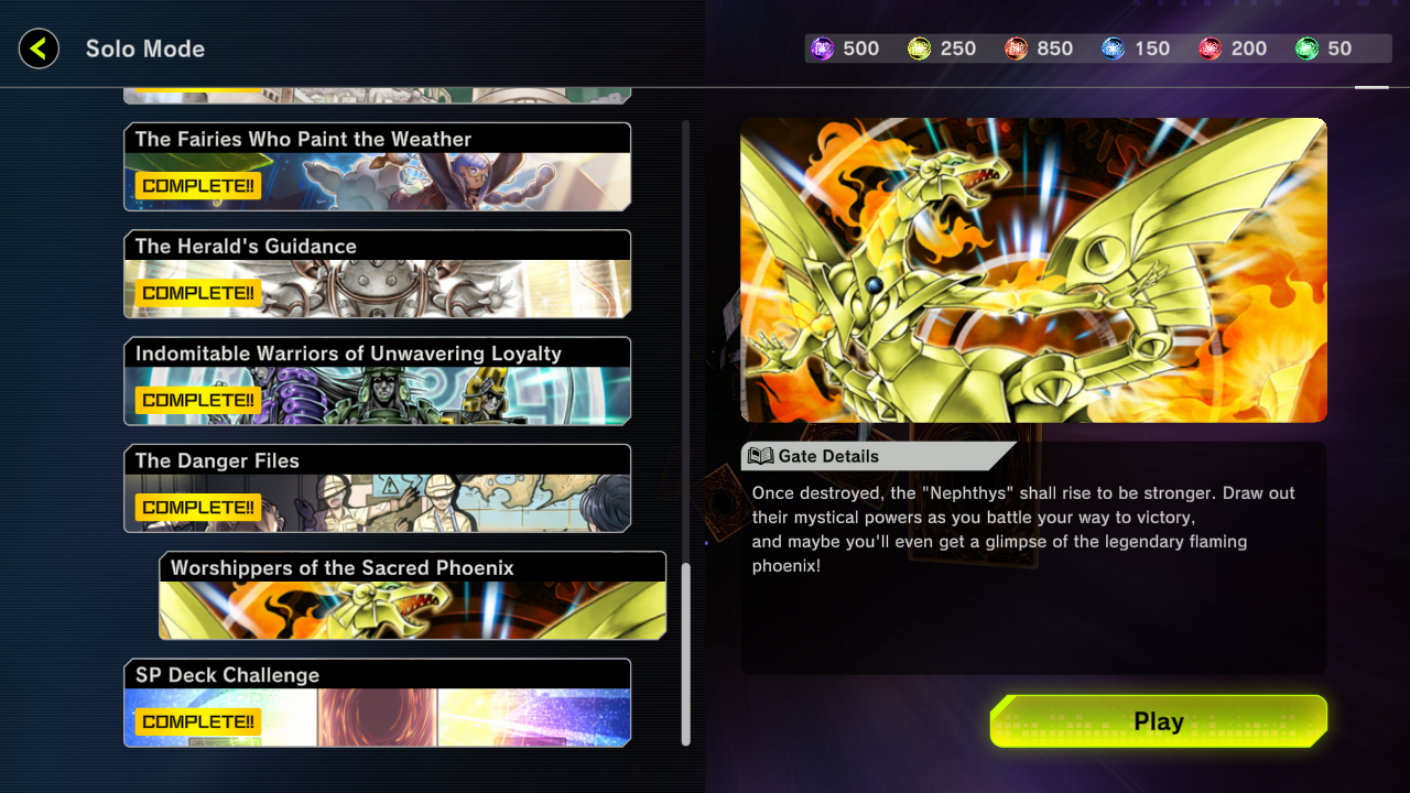 The Nephthys archetype is next in line for a showcase in the Solo Mode Gate! We get to learn more about the legend of the phoenix that rises from its ashes and the many worshippers it has. This one is on the shorter side, with only 3 Duel nodes, but still some cosmetics and Gems to claim.