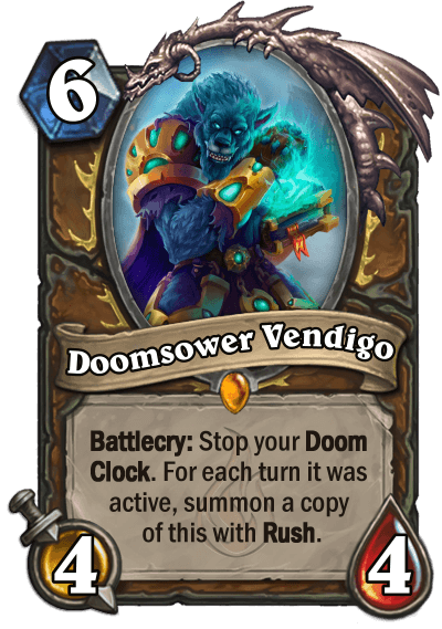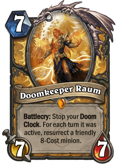 Why exactly would you want to have your Doom Clock active at all? Surely it can't just be to have some higher-statted minions. Fortunately, you are rewards for your efforts for keeping your Doom Clock active. Sweet Demise will restore 12 Health to anything if your Doom Clock is active, and there are a number of huge payoff Legendaries like Doomkeeper Raum which stop your Doom Clock entirely (although it will start ticking again if you play another card which sets it) and gives you a huge reward based on how long you kept it active.