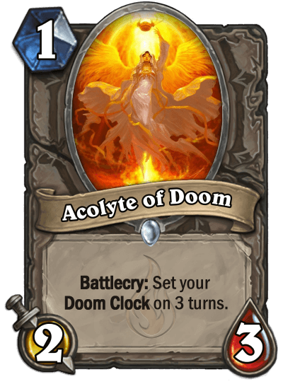 Doom Clock is a mechanic that when activated by cards like Acolyte of Doom, will being a 3-turn countdown. If that number reaches 0, your hero is destroyed and you automatically lose the game. This of course, sounds quite dangerous, but it can be reset back by playing another Acolyte of Doom or a card like Doomer which stops it from ticking while you control it.