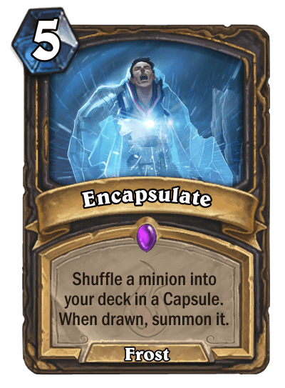 Rogue got a really fun "Casts When Drawn" package this expansion. This card is my favourite out of those. It works like Druid really old card called Recycle, but costs (1) less and shuffles a minion in the Special Capsule token, which is a Casts When Drawn that resummons it on your side. Extremely powerful removal with many synergies!