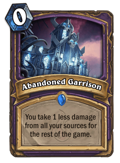 Here I'll actually mention two cards. Abandoned Garrison is my favourite as well as probably the best Abandoned Location - those are spells which all affect some numbers for the rest of the game. The other one I wanted to mention with a shoutout to TheArcanist! The card was based on his idea and was a perfect fit for my expansion.