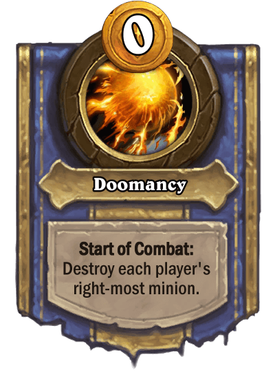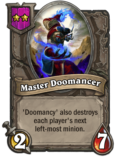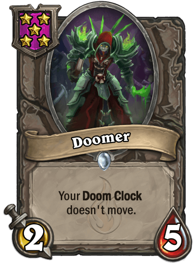 I must say - this horrifying deadline mechanic honestly worked out even better in Battlegrounds than in the main game! Mainly because of how more strategic it feels. 8 neutral minions with mostly Menagerie and Taunt support are now replaced with 8 Doom Clock supporters - giant stats, but a giant risk. Early on, they can help you cheat out some wins, but you really need to watch out for your turns left. Mid-game is where some actual stability comes in with more tools to prolong your time. And once you reach Tier 6, you can drop Dr. Boom's Freaking Dad with absolutely BOMBASTIC stats and finally stop your Doom Clock!