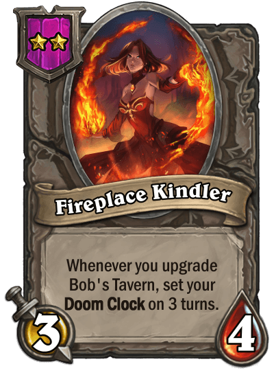The Doom Clock mechanic from the main set is carried over into Battlegrounds. A more detailed explanation on the mechanic can be found in part 1, but basically, cards with Doom Clock create a timer that counts down, and if it reaches 0 you lose the game. You use card effects to stop or reset it, and you have other cards that reward you for keeping the clock active. Doomer from the main set reappears in the Battlegrounds, but there are also some new Battlegrounds-exclusive cards that utilize the mechanic like Fireplace Kindler. This set of Battlegrounds cards is also part of an event called "Boom and Doom" which temporarily replaces some of the existing Menagerie and Taunt synergy cards.