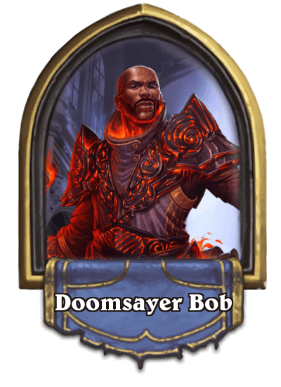New cards isn't just all to find here in the realm of Battlegrounds content. We've got some new heroes which will be talked about in the interview, and some custom cosmetics. You guys wanna see Doomsayer Bob? Rokara, The Lich King, and a couple of others have gotten their own makeover for the end of the world.