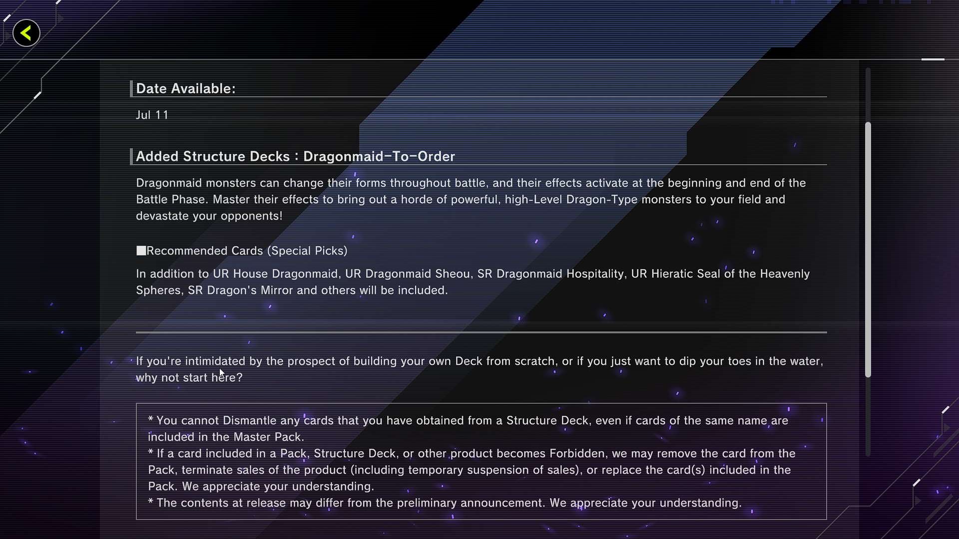 The Dragonmaid archetype is already in the game, and it's unlikely we'll get new cards with the structure deck. That said, it could be a cheap way to get the cards you'd need for a deck while spending a fairly small amount of Gems. Here's a list of cards we know will be in the deck: