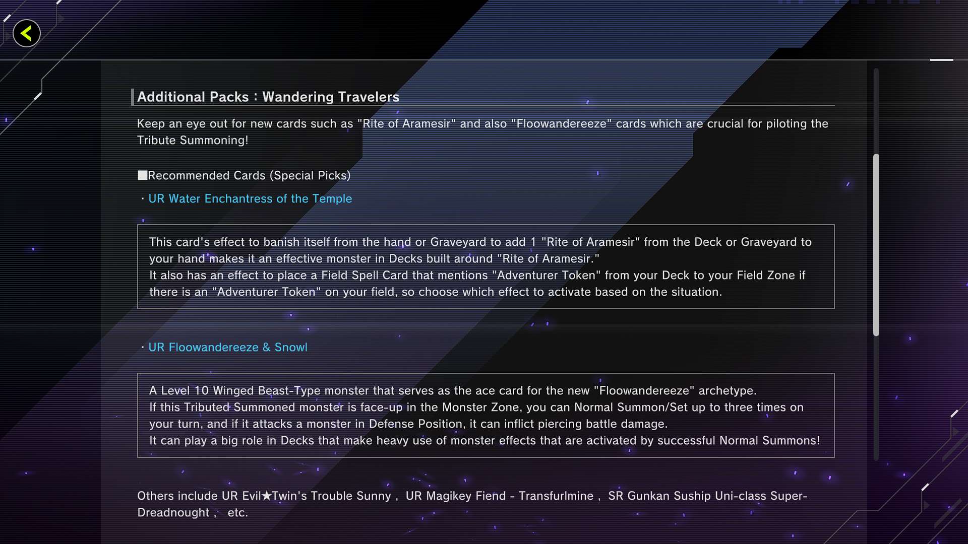 Leaked yesterday on the the Google Play Store, the new pack, named Wandering Travelers, adds the Floowandereeze archetype to the game, while also offering new support for the Evil★Twin, Magikey, and Gunkan decks. The leaked image also mentions new Machina cards, but not the in-game announcement. Here's the cards we know of so far: