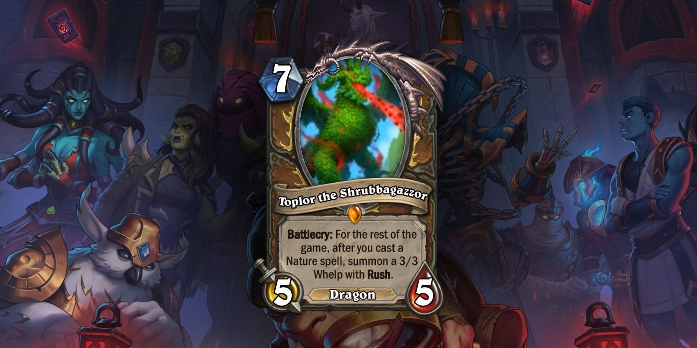 Topior the Shrubbagazzor, now that's a card. Unsurprisingly its for druid, because if there isnt some completely broken card each expansion for druid then someone in team5 isn't sleeping right. The level of absurdity and flexibility this card offers is nothing short of completely insane. At this point you're really just praying your opponent never draws it early, because if they did then for the rest of the game you'll be staring blank eyed at your screen as your opponent literally destroy your soul bit by bit.