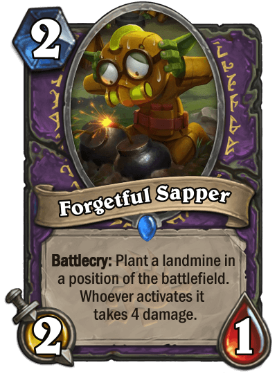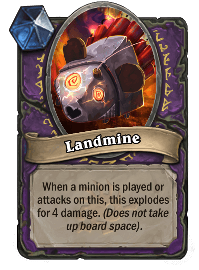 Initially it was developed as a delayed Deathrattle enabler, allowing you to set it up by placing the mine somewhere else when you need it (considering Warlock does have some desirable Deathrattles, including Proud Sacrifice in the main set), and by placing it on the opponent's battlefield, it acts as a revealed Snipe that your opponent must work around to not get blasted, or just play something weak to bait it out.