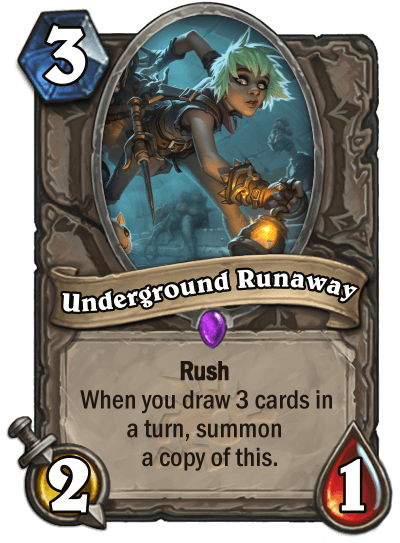 As for cards that best tell the story, Black Market was one of the last cards I made for the set, being a replacement for a previous one with a similar trigger, ended up working in it's favor. As items and objects get thrown around everywhere and traded for goods, despite their obvious illegality, search for what you need and get out of there, the black market is a crowded place that I'm sure you don't wanna search for. Rogue in the mini-set is about adding cards to your hand, which they do often (Burgle, Shadowstep, and the such), but I didn't want to go the obvious route, which is burgle rogue since we all know how that worked out *cough* Wildpaw *cough*