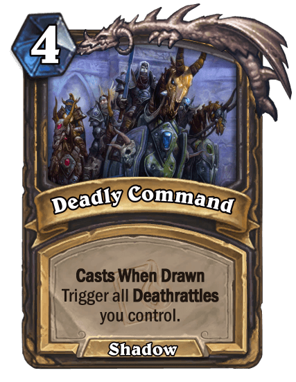 And this one I'll repeat, but Deathwing, the Final and the options you can Discover to "end this world!" are really cool for a Deathwing iteration! There are some downsides of playing it though - you need to keep the Doom Clock ticking as soon as turn 1! But that's not all, because then you then need to play the minion and then not die after playing one of the spells which affect both players. It's an option for either super hardcore control decks or Doom Clock decks which only care about early Doom Clock as a benefit. Really interesting card and probably my #1 favourite. (And yes, I would ban it from getting randomly generated, cause, y'know, Lady Prestor)"