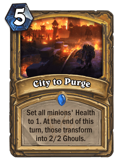 Most of the cards that represent the overall setting of the mini-set are of course those which represent events, mobs and characters in Stratholme - cards like City to Purge, Phase Hound, Fleshflayer Ghoul, Restless Soul, Ghostly Postman or both class Legendaries - Balnazzar and Aurius Rivendare - leaders of Scarlet Crusade and the Plague respectively, who both occupy the city.