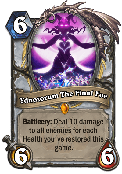 The inspiration comes from Murozondy or more accurately some cards I was trying to make for Murozondy. See back in my “early” days of card making I made pretty more nothing but references. I have the entire DDLC cast and Jetstream Sam as cards in there. So one day I made some for other hearthcard creators specifically Murozondy, however like 4 out of 5 cards did not make it to the gallery and got voided. Leading to the flavor text on cards talking about how she repeatedly escapes the void. After a while I make some more references and some more cards that don’t get in. Someone then speaks about the Backgammon Extended Hearthstone Universe or BEHSU for short. After a while and a bit of discourse I decide to actually do it and make a whole expansion. And what better to base the set on than the person who started it all by constantly going to the void. Along the way Bacc hijacked the main villain seat but Ydnozorum is still the main antagonist.