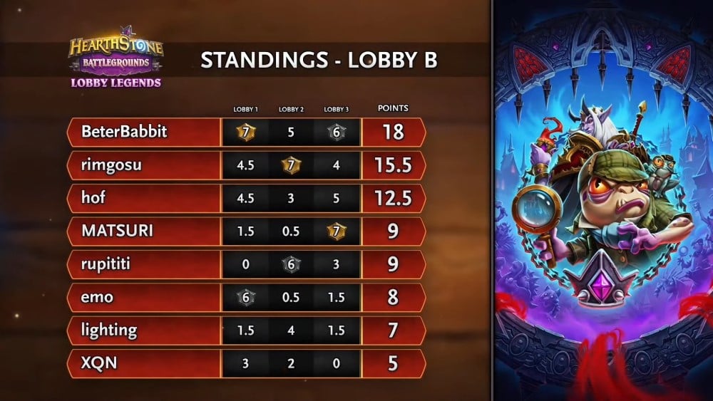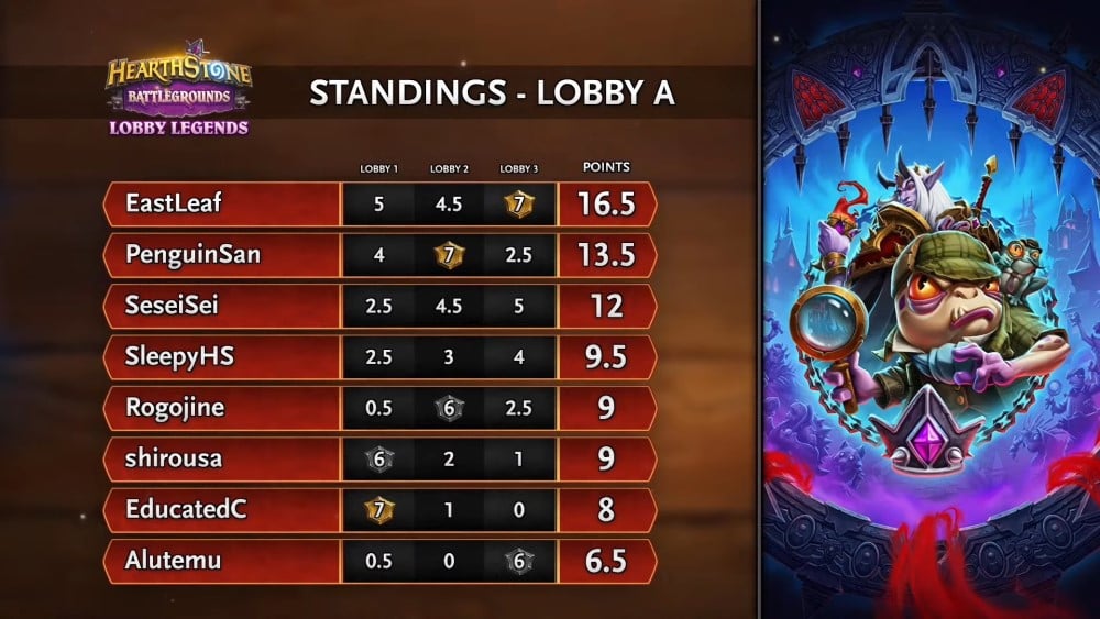 Hearthstone Battlegrounds tournament series Lobby Legends continued this weekend with the sixth event called "Castle Nathria". 16 qualified players around the world fought for the glory and their share of the $50,000 prize pool. You can relive the action with our spoiler-free post below.
