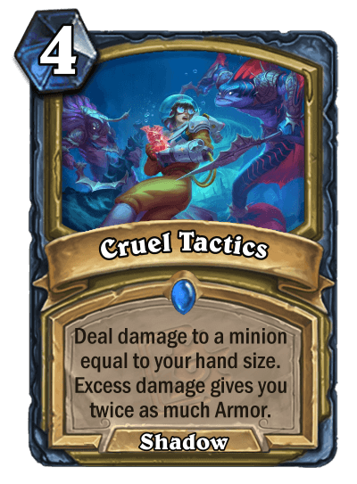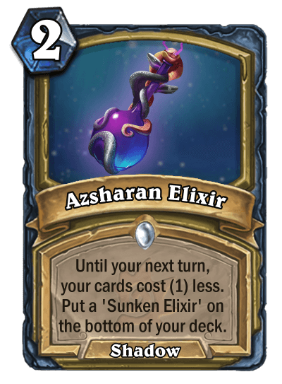 Mr.Stupid: "I want to show off Cruel Tactics and Azsharan Elixir as they are both Shadow spells, something I’ve been slowly introducing to the class as it fits the last two sets, and helps with the Spell Menagerie archetype I was pushing."