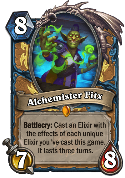 I also want to share Alchemister Fitx. He was a cool legendary I made right after the last time i talked about Artficer here, and now I have an even bigger version of him as a payoff to the Elixir Archetype. It even works with the old Fitz, who’s like a good alchemist and mixed into my core set."