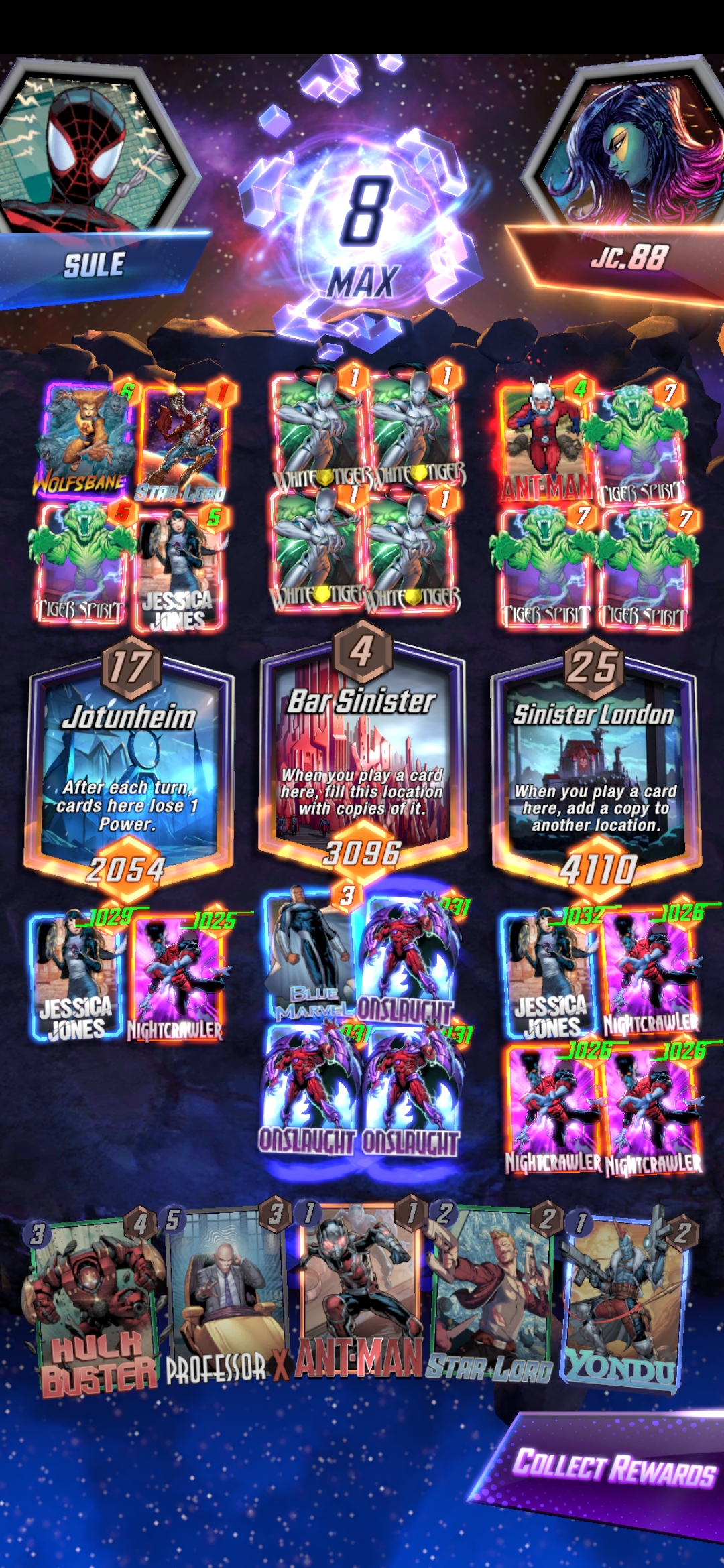 We've got two Pool 1 takes on the Featured Location this week, starting off with a deck going all-in on Bar Sinister with an Exodia combo. The combo works like this: First, play Nightcrawler to Bar Sinister (which will populate itself with four Nightcrawlers). On turn 5, move a single Nightcrawler away and play Blue Marvel (or Ka-Zar) to Bar Sinister. On turn 6, move the other three Nightcrawlers away and play Onslaught to Bar Sinister to summon two more Onslaughts to exponentially increase the Ongoing buff: