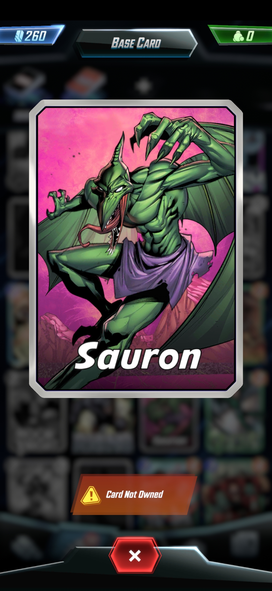 Following the recent patch to MARVEL SNAP, eagle-eyed players noticed a new friend that's hanging around their collection: a pteranodon named Sauron, who shows up if you toggle your view to "Unowned," and looks like this: