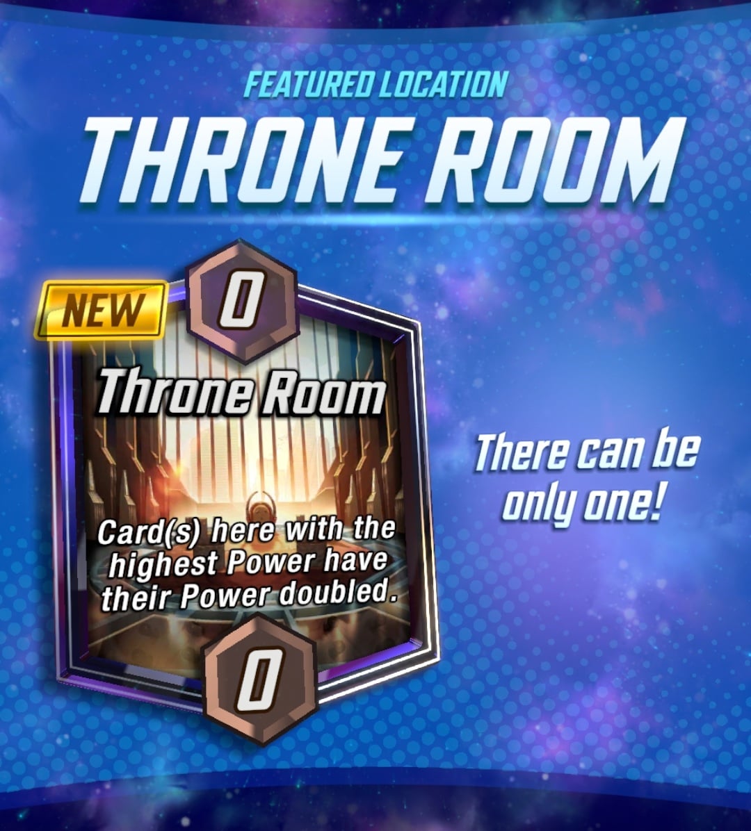 Throne Room is a completely new location being added to MARVEL SNAP as part of the November Season: Warriors of Wakanda. The card or cards with the highest Power there have their Power doubled.