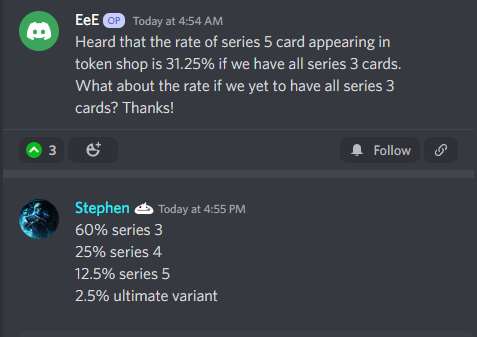 Remember that over time, some cards will be moved down from Series 5 to Series 4, and some cards will be moved from Series 4 to 3. It means that if you aren’t sure you want to spend the full Token price on a new Series 5 card, you can wait until it gets cheaper. How long might that take? The exact details are currently being figured out, but the developers have stated that their goal is for it to be "months, not years" before cards can become a part of an earlier Series.