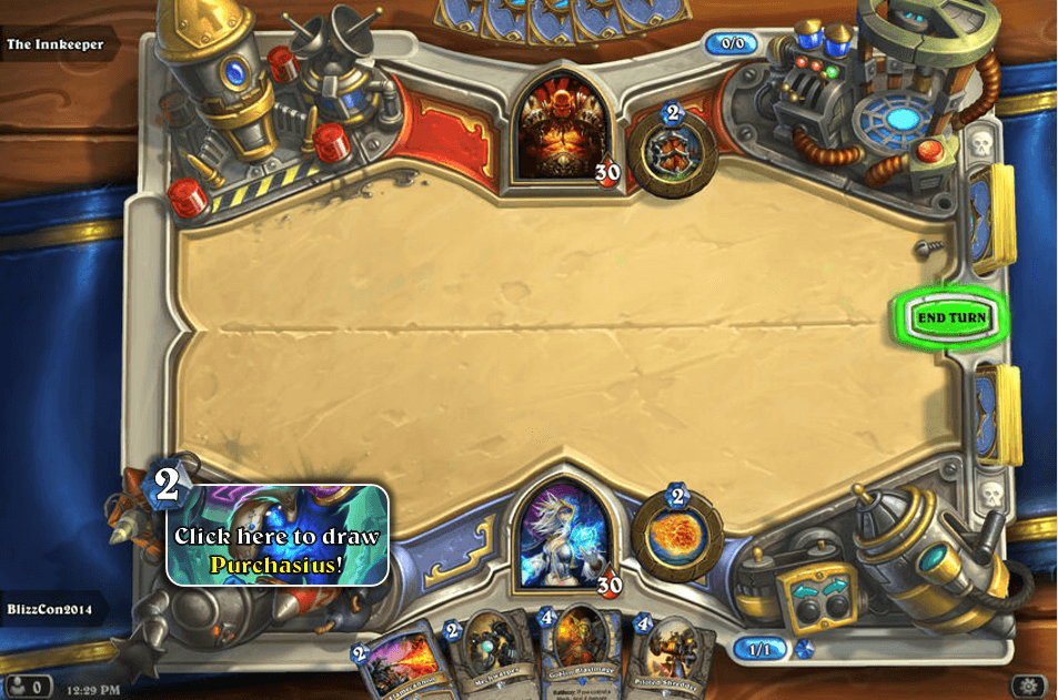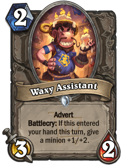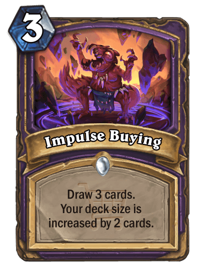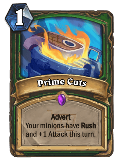 We said earlier that the set is about shopping, and one of the biggest aspects of shopping is advertisement. The new keyword of Gallywix's Megastore is Advert. During each of your turns, a little pop-up window will display with an Advert card in your deck (chosen at random), and if you click on it, you will spend 2 mana and draw that card. In the spoiler below is an example of what this would look like with Purchasius, which functioned as the main card to advertise the mechanic (no pun intended) during its development.