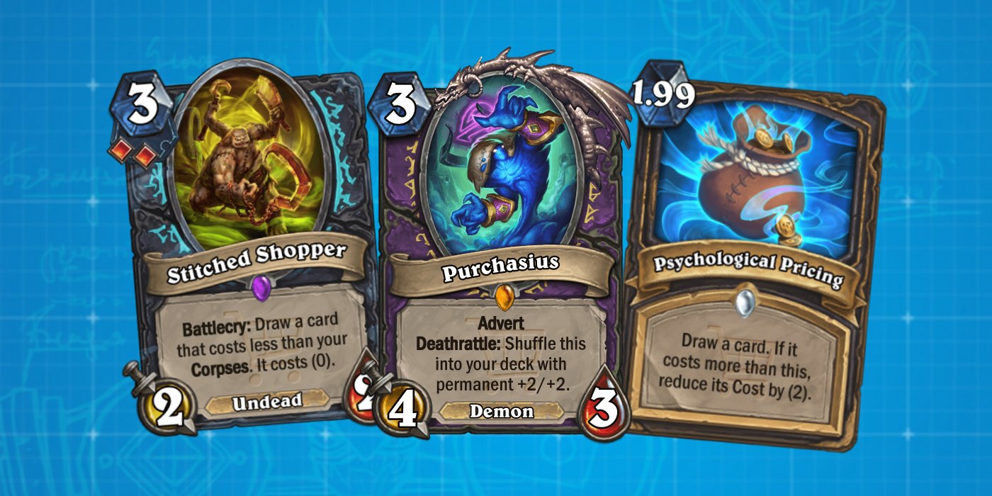 TheFriendlyEnemy: "Once I had the foundations of the set in place, it was an absolute blast to design the whole way through. In fact, the set was so fun to design for that several other designers who have seen it ended up making their own custom cards with the set’s mechanics. (If any readers feel similarly inspired by this set, feel free to share your ideas with me!) However, my favourite class of all to make was Rogue. It felt like every card really encapsulated an element of the marketing theme, like Psychological Pricing and Half Off, while pushing a cohesive Discount Rogue direction."