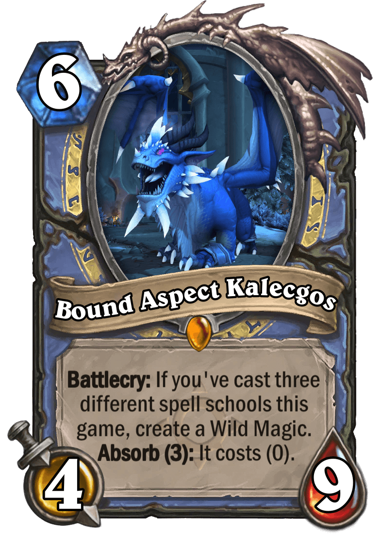- Bound Aspect Kalecgos is my attempt to bring back feelings from the old Kalecgos but with a twist. It work as an hybrid between the old one and Kazakus. The Wild Magics are actual attacks used by him during the Sunwell Plateau raid where he is controlled by Sathrovar.