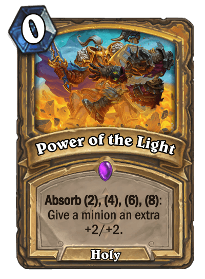 -Power of the Light was my attempt at expressing the ability of Paladins to tap into the Light to empower themselves while facing Kael'Thas. It's funny to see that it was a similar direction the Hearthstone team chose for Paladin this expansion.