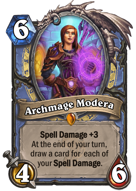 Mr.Stupid: "I had two schools of thought for the custom cards I included into the core set. The first was to make more general cards that fit well in any deck as that is mostly what a core set is to do. Archmage Modera is a key example of this.