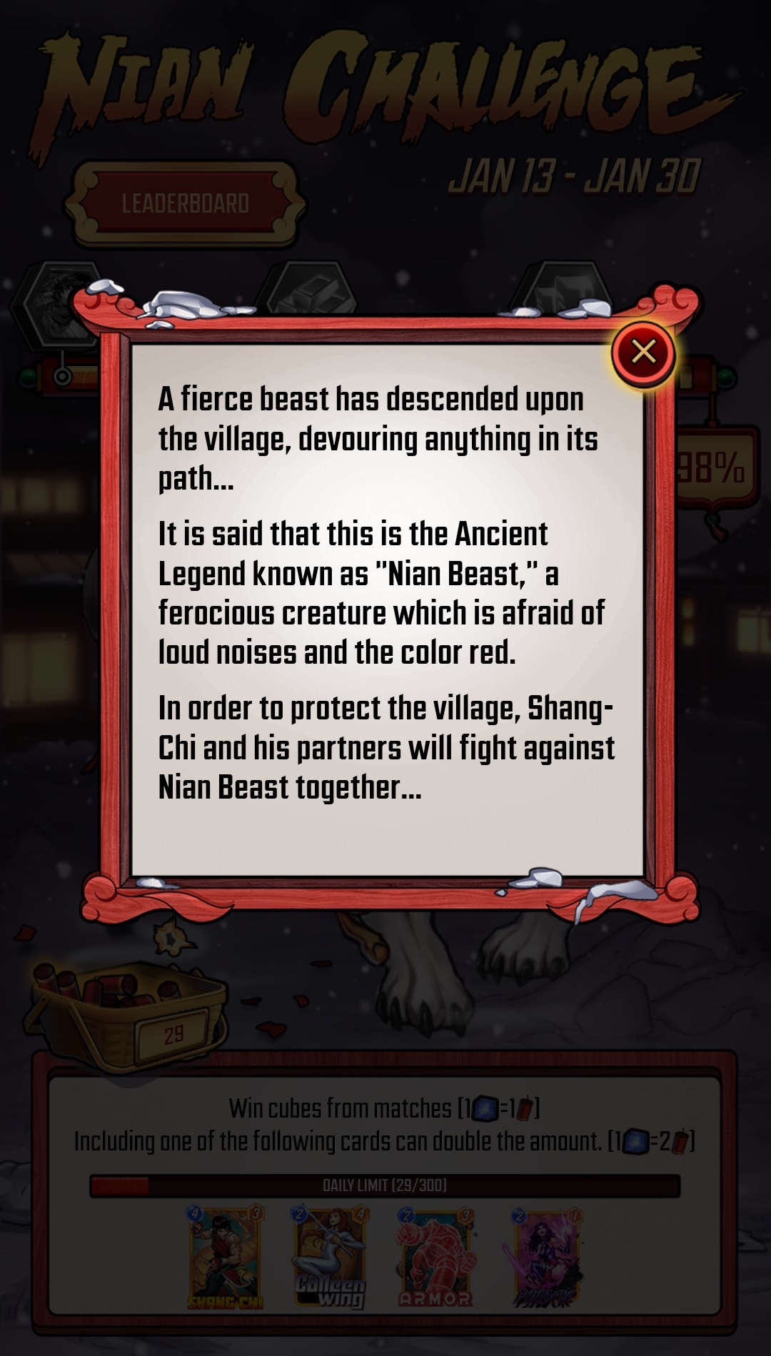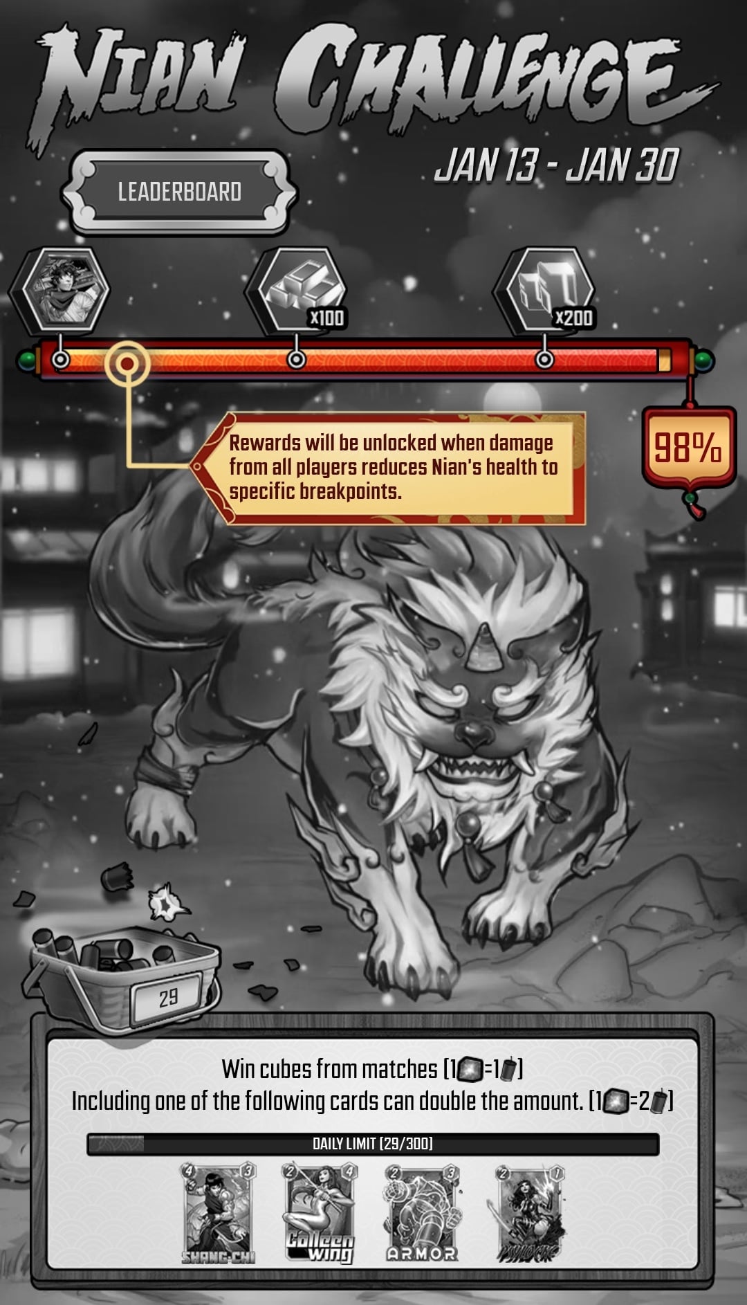 MARVEL SNAP has a new Community Event, and it's counting on the members of the community to gain Cubes, defeat the Nian Beast, and earn rewards.