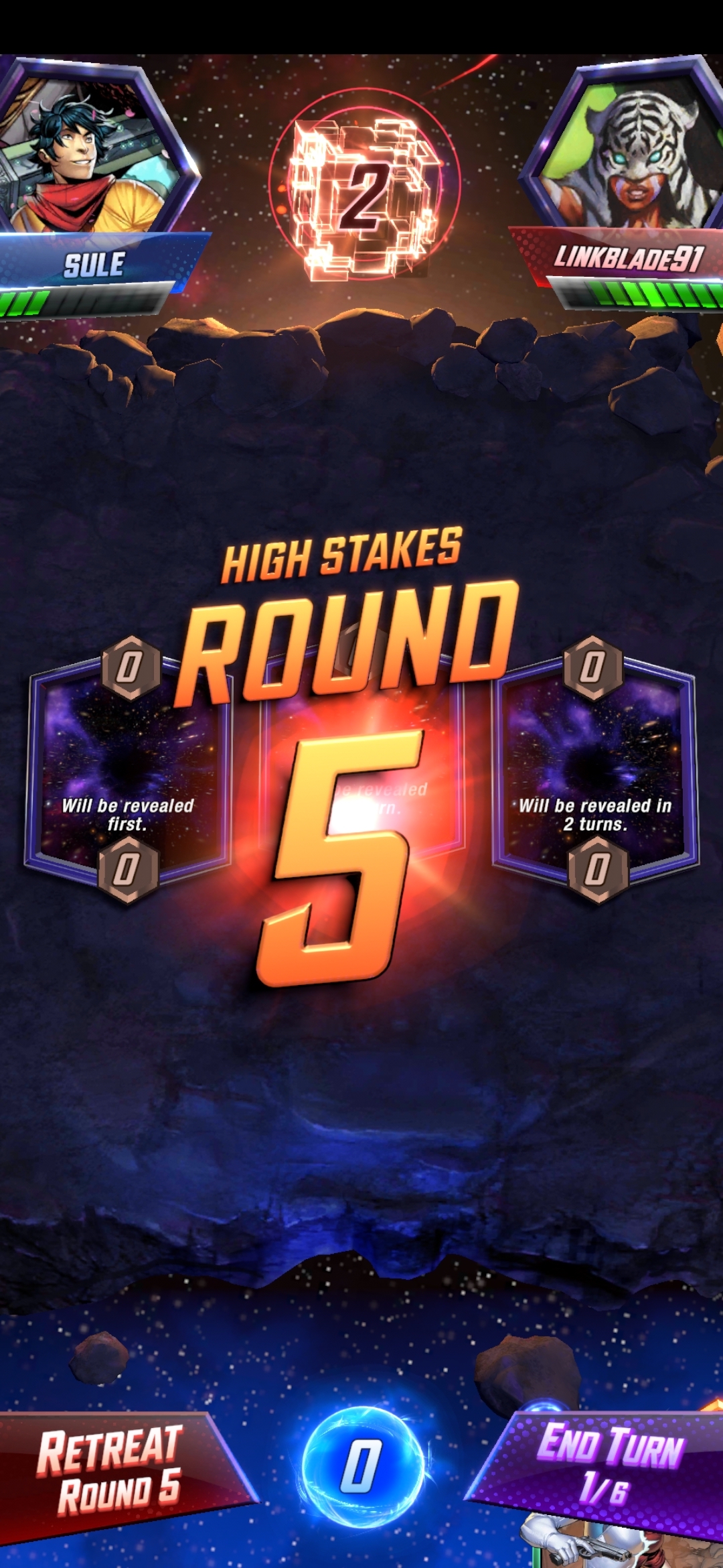 High Stakes Rounds start with Round 5, doubling the Cubes at stake from the beginning of the match. You can still Snap and push the stakes even higher. However, you cannot deal to your opponent more damage than you have Health remaining. As seen below, one player only has 3 Health left, and so can't deal more than that to the opponent.