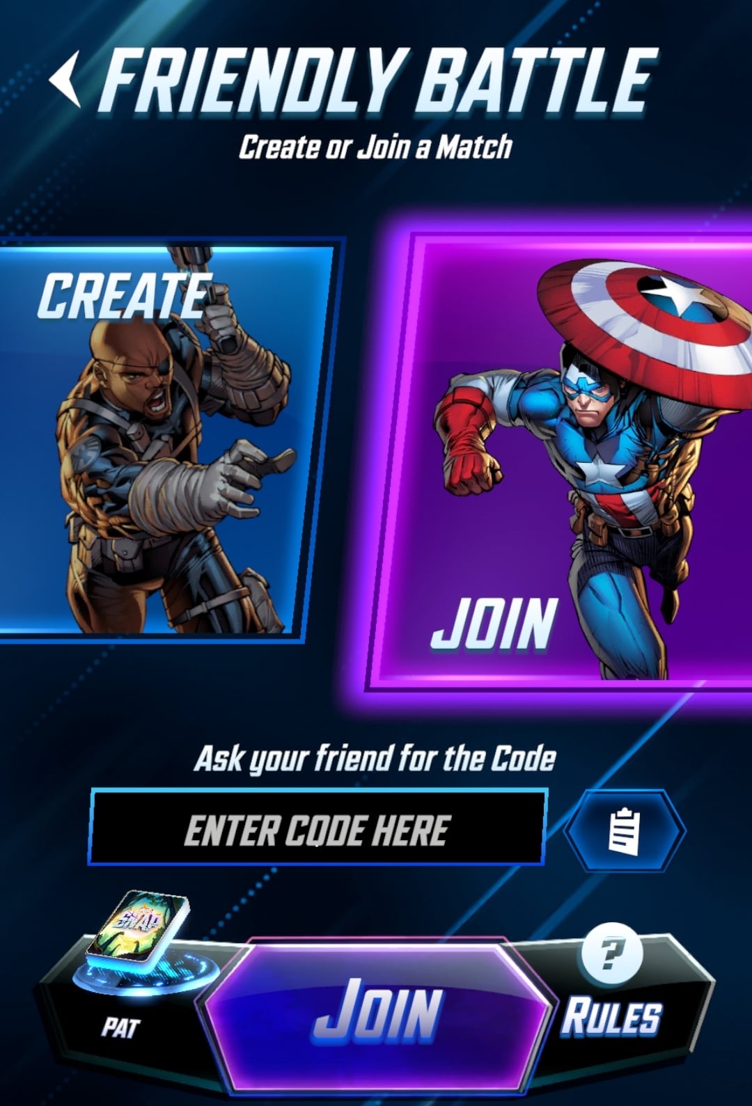 From there, you can either create a code for a new Battle, or enter a Code from your friend. You'll have to communicate in the real world to share your code, as there is no in-game way to communicate with your real-life friends.