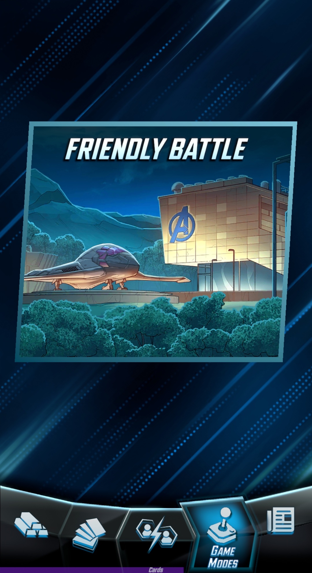 The first thing you need to do is tap the Game Modes icon on the bottom bar, which will take you to the Friendly Battle start page.