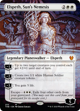 Ashiok looks like it could make an appearance in Dimir discard/control decks and cause loads of frustration by bouncing creatures to your opponent's hand or use their own exiled cards against them. Elspeth, the second Planeswalker revealed, will definitely become a staple of White Aggressive decks with her low cost and ability to buff multiple creatures or create tokens. She also showcases one of the new keyword abilities for the set: Escape. This new mechanic will provide you with an alternative way to cast cards from your Graveyard by meeting the Exile requirement listed. Athreos is going to be a troublesome foe to encounter in Orzhov decks by being Indestructible and making your creatures nearly impossible to get rid of.