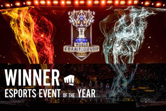 During the Game Awards on Twitch last night, League of Legends was named Esports Game of Year, and Event of Year (for Worlds 2019). [source]